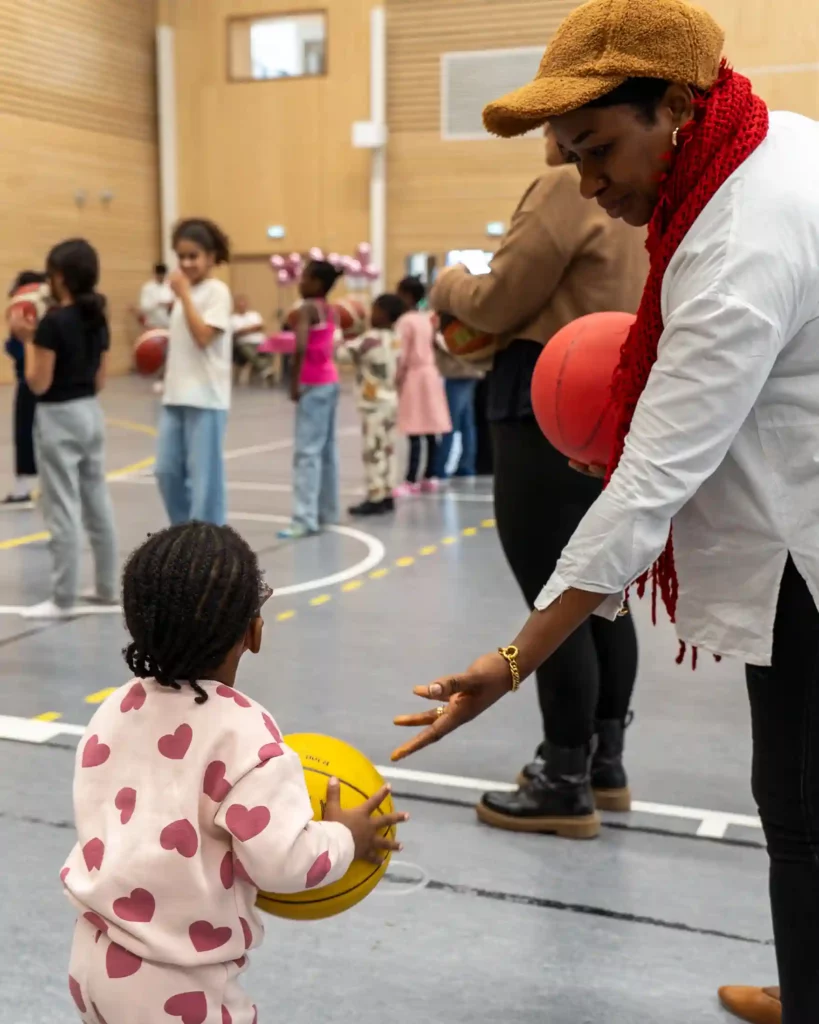 La journée se poursuivait Salle de l’Europe pour l’après-midi Mères-Filles. Cet évènement, inscrit désormais dans le calendrier annuel du club et ouvert à tous, a pour ambition de créer un moment de partage familial au sein du quartier. Stands de beauté et coiffure, structure gonflable, défis sportifs sont autant d’activités proposées permettant de réunir petits et grands. L’après-midi a été marqué par deux temps forts : une session collective de découverte du BaskeTonik – activité proposée au sein du club – et le tirage au sort de la tombola au profit d’Octobre Rose en présence de la coach de l’équipe professionnelle Aurélie Bonnan.